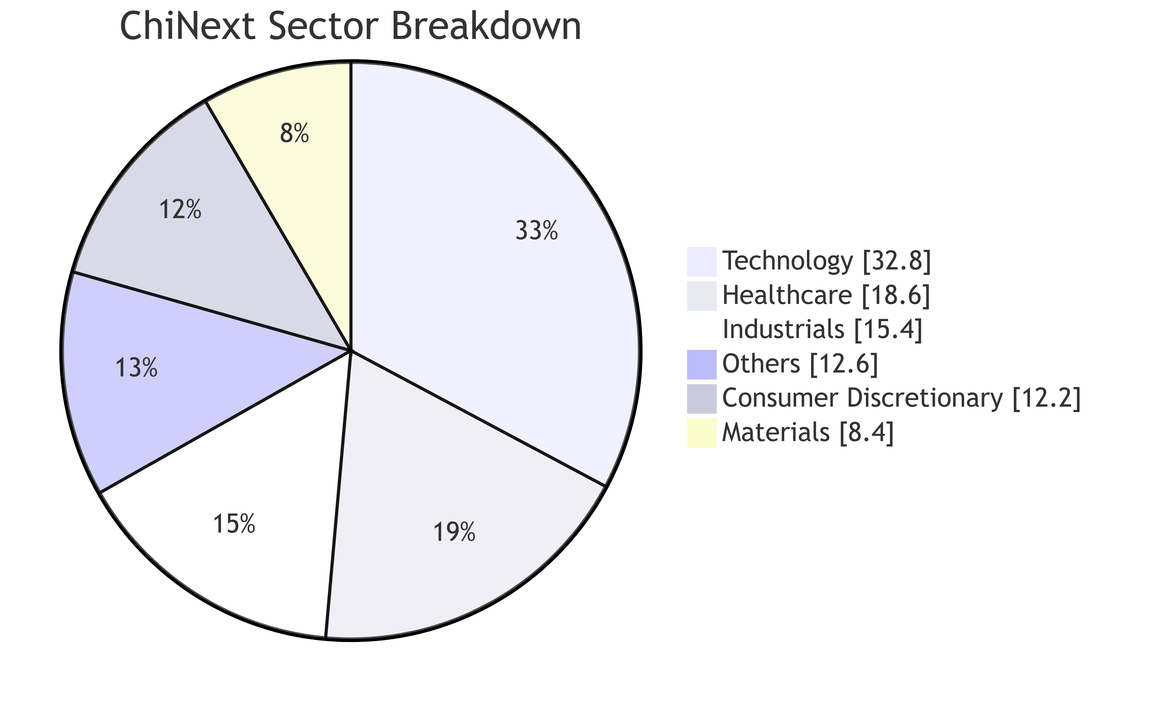 The ChiNext board, also listed on the Shenzhen Stock Exchange, is often compared to the NASDAQ as it focuses on high-growth companies within technology and innovation. Technology constitutes the largest sector (32.8%), followed by Healthcare (18.6%) and Industrials (15.4%). Its top holdings include Contemporary Amperex Technology (CATL) , East Money Information and Wuxi Apptec. ChiNext is a major attraction for investors interested in China’s emerging tech landscape and innovative enterprises, as it reflects the country’s growing focus on tech and high-value industries. Ironically you also get WENS the pork farmers in it, but thats Chinese indexing for you.